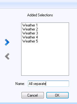 This weighting that you just created can now be selected. We can now repeat the steps above and create weightings where each and every one of the included weather forecasts has 100% and then select all entries in a “Selection” collection which we can call “All separate”.