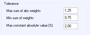 The “Tolerance” box contains options for defining settings for warning messages from the regression process. Normally, the results from regression should give positive weights (possibly also a slight negative) which are close to 1 when totalled. The constant should also be small in relation to the mean load. Deviations from this may indicate problems somewhere in the forecast processes.