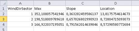 Each file consists of a header row and then one row for each wind direction sector and then each row has columns for max, slope and location parameter for the s-shaped logistic function.