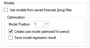 For the Zephyros model, you have the option to turn off the automatic adaptive behaviour of the model and instead rely on more or less fixed power curves that are recalibrated according to some schedule instead of each time you do a new forecast. This will improve the performance considerably for the forecasting process. The optimization of the power curves is done when the ‘Create/use model optimized for period’ is checked in conjunction with an automatic selection or fraction, that is, at the same time as you optimize weights or dynamic fractions.
